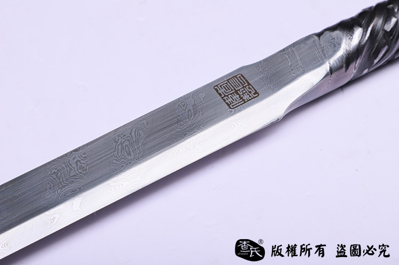 【作品规格】 全长:110cm左右,柄长:30cm,刃长:76cm,刃宽:3.5cm,刃厚:1.2cm,重量:不带鞘2.5kg左右。