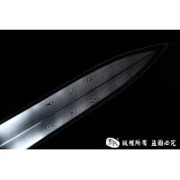 【作品规格】 全长:65cm左右,柄长:15cm,刃长:43cm,刃宽:4.1cm,刃厚:1.3cm,重量:不带鞘1.2kg左右,带鞘1.8kg左右。