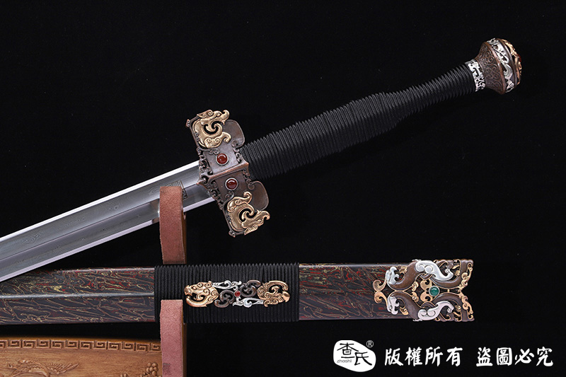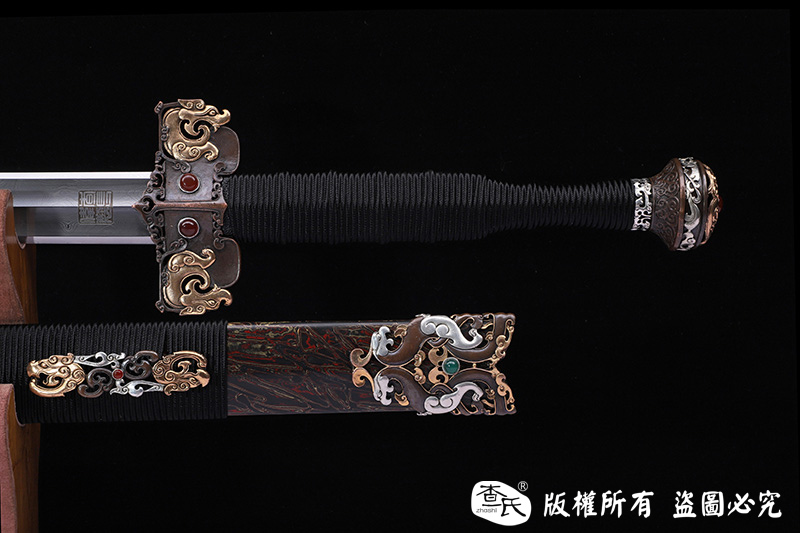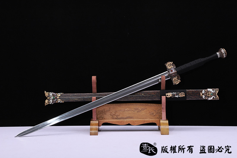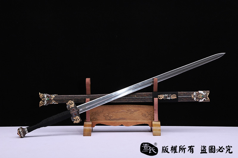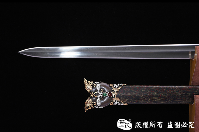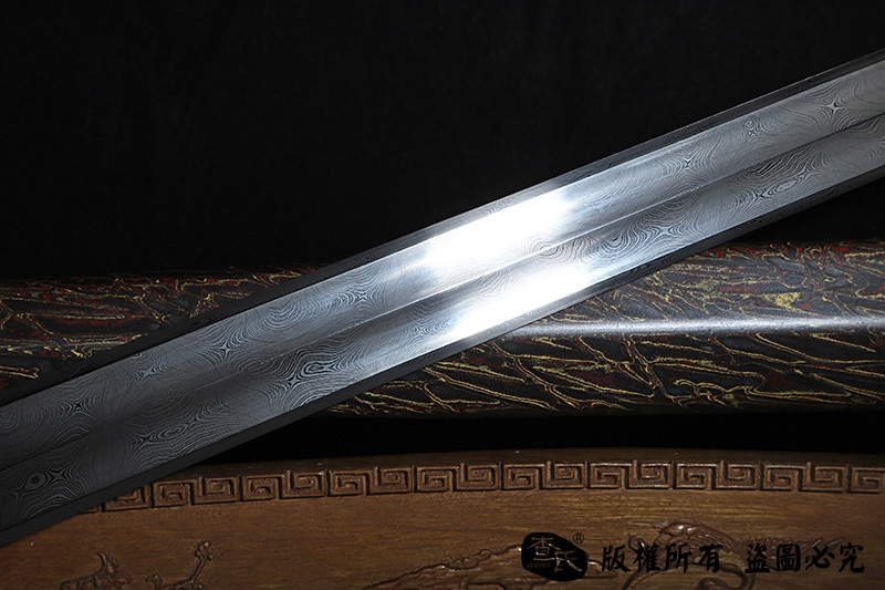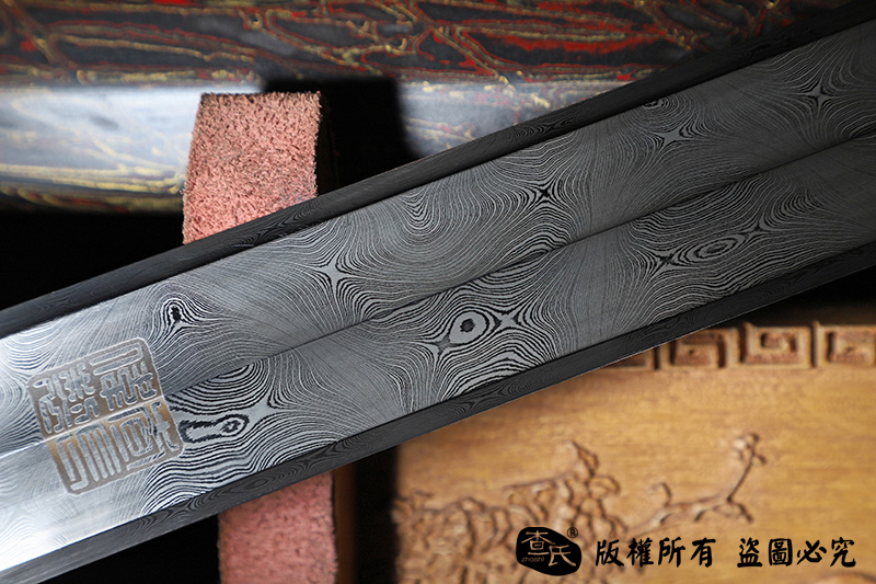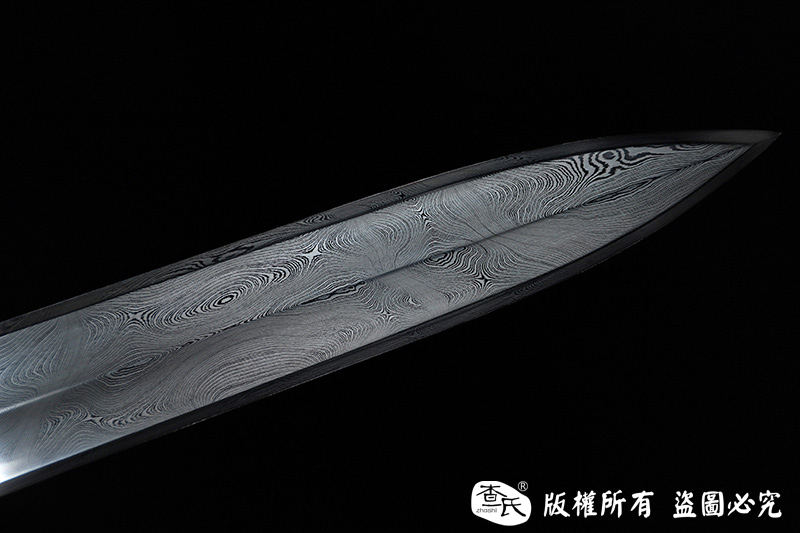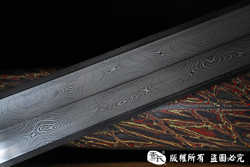 【刃材工艺】 禾字号自炼钢乾坤纹,手工瓦楞型剑樋,古法热处理,手工精细磨,性能优越,手感优越,根部刻字:查长伟制