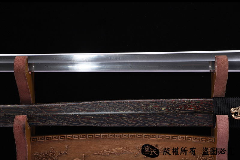 【作品规格】 全长:118cm左右,柄长:27cm,刃长:82cm,刃宽:4.0cm,刃厚:0.8cm,重量:不带鞘1.2kg左右,带鞘1.8kg左右。