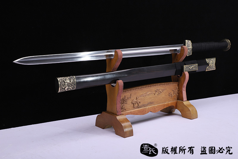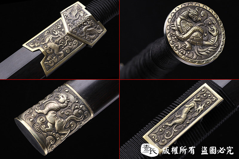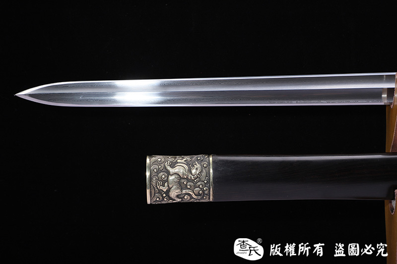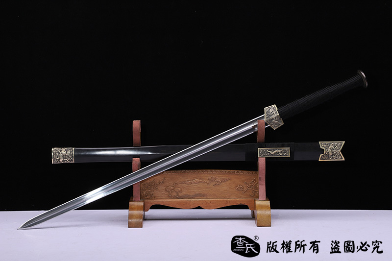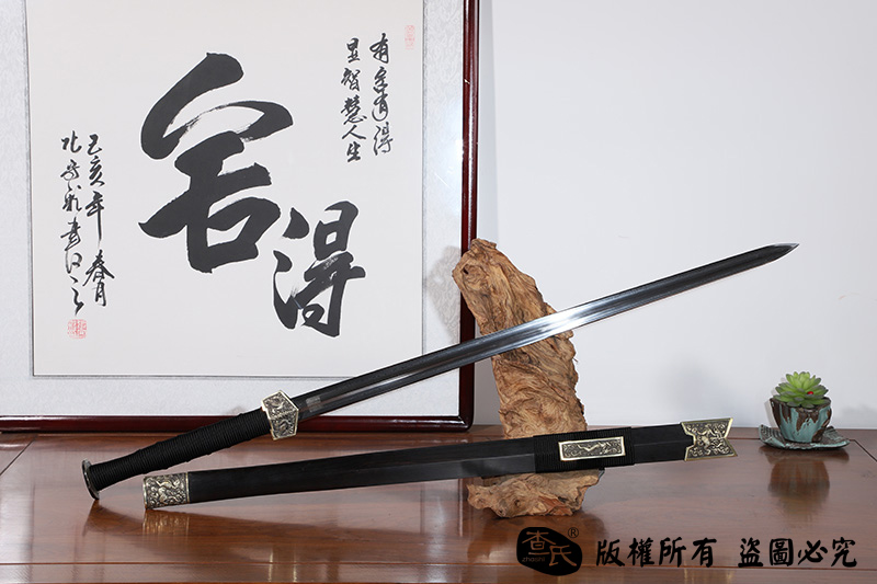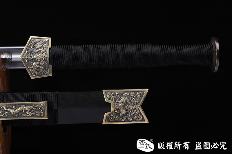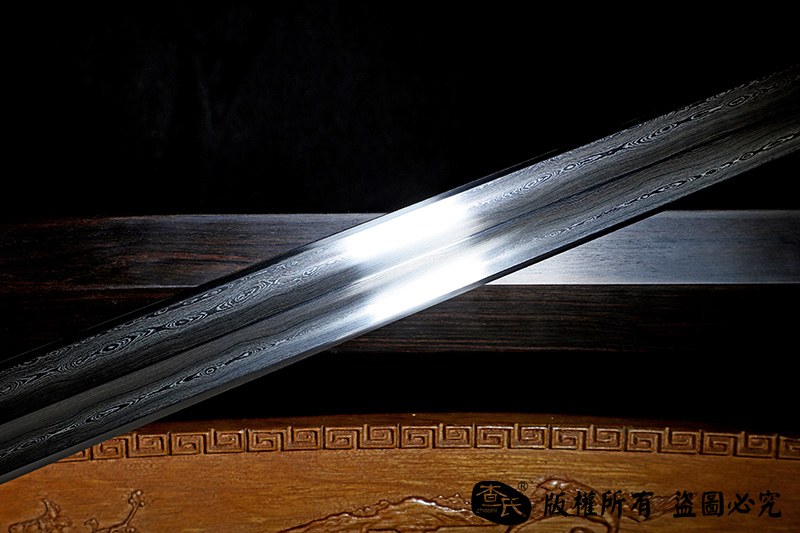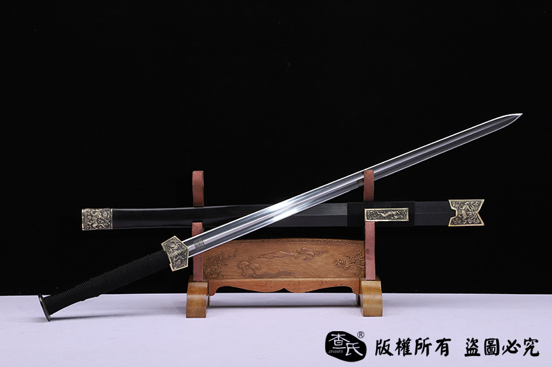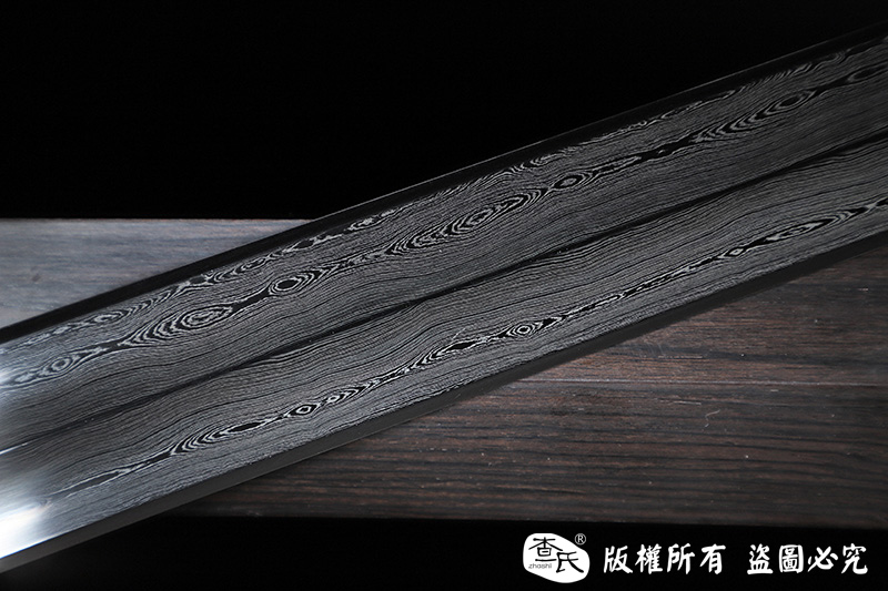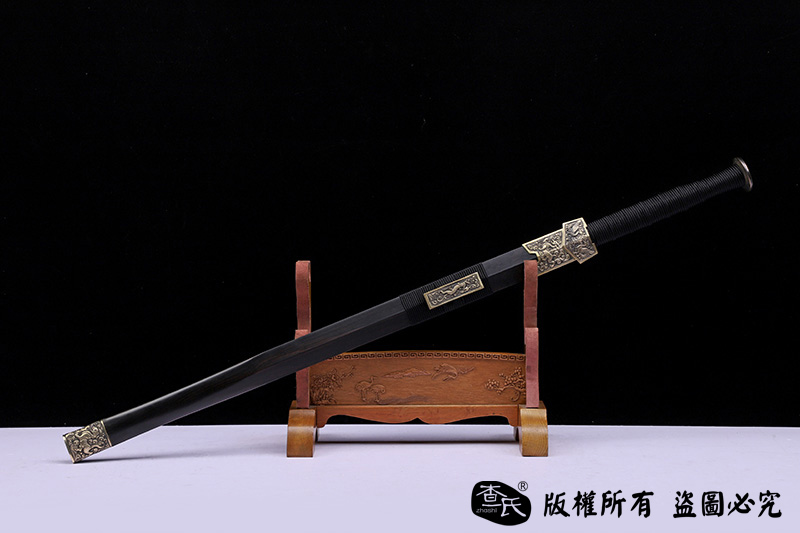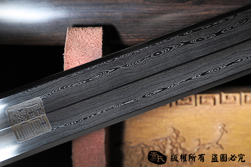 【作品规格】 全长:108cm左右,柄长:26cm,刃长:76cm,刃宽:3.6cm,刃厚:0.8cm,重量:不带鞘1.1kg左右,带鞘1.8kg左右。