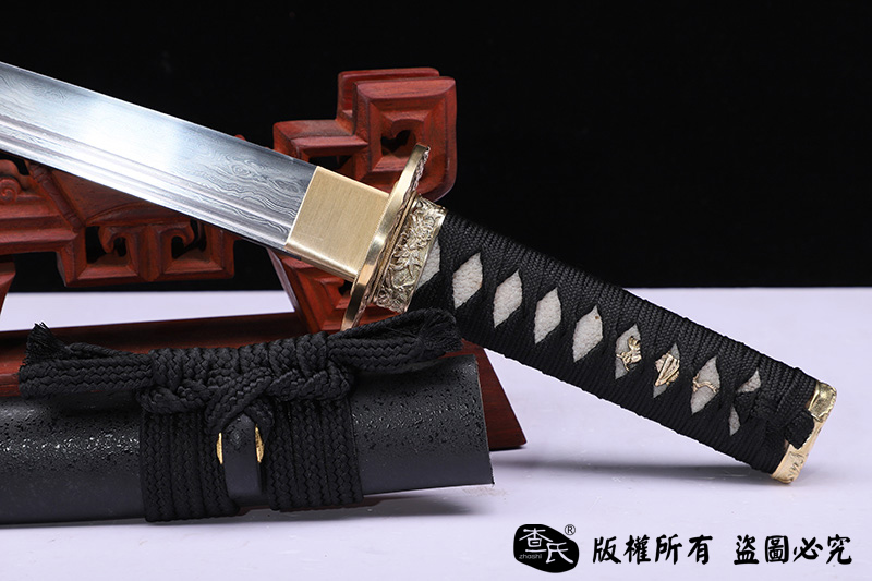 【作品规格】 全长:52cm左右,柄长:16cm,刃长:32cm,刃宽:3.2cm,刃厚:0.7cm,重量:不带鞘0.5kg左右,带鞘0.6kg左右。