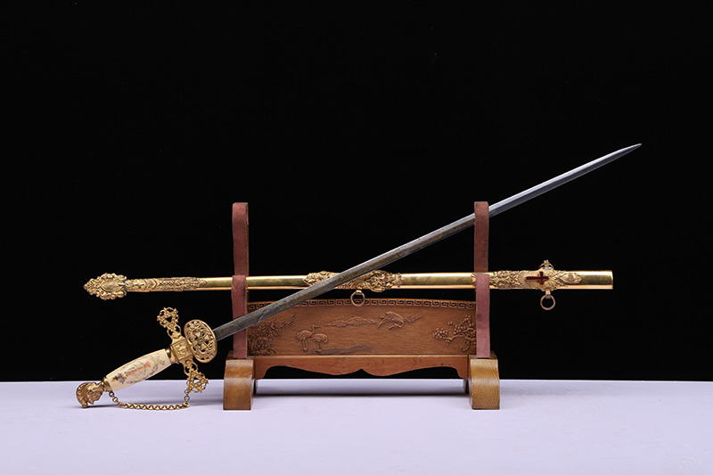 【作品简介】 本店商品均实物拍摄,细节清晰,可仔细比较。 【作品规格】 全长:93.3cm左右,柄长:14.7cm,刃长:70.7cm,刃宽:1.8cm,刃厚:0.45cm,重量:不带鞘0.65kg左右,带鞘1.15kg左右。 【刃材工艺】 【作品鞘材】 【作品装具】 【作品硬度】 HRC 【作品柄材】 【作品赠品】 锦盒 架子 证书 【其他事项】 手工产品,重量尺寸稍有误差,请以实物为准。 赠品里面的架子并不是图上的展示的架子,图片架子另外加180。
