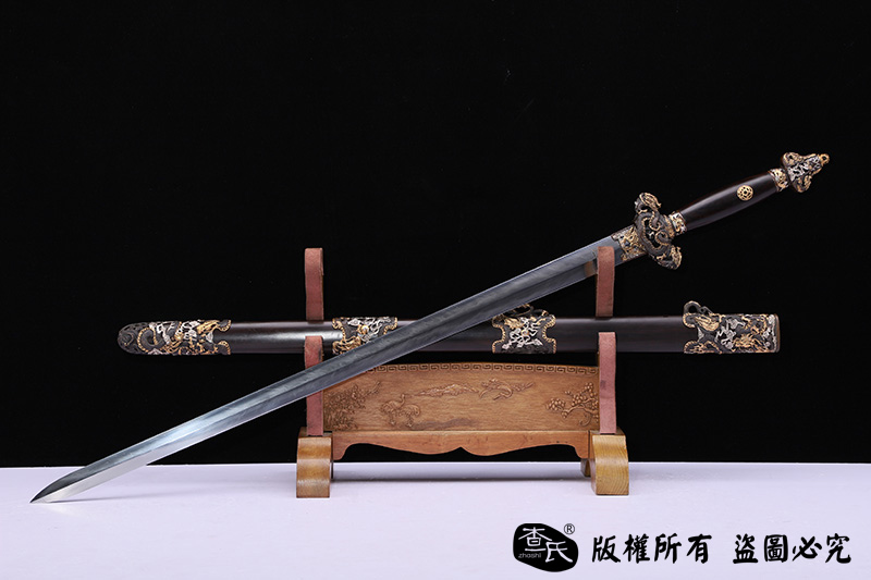 【作品规格】 全长:103cm左右,柄长:21cm,刃长:77cm,刃宽:3.5cm,刃厚:0.8cm,重量:不带鞘1.1kg左右,带鞘2.0kg左右。