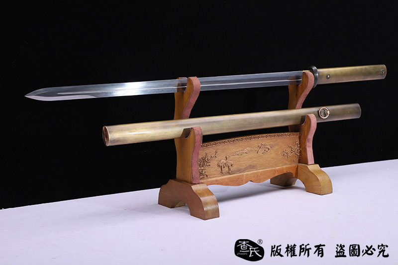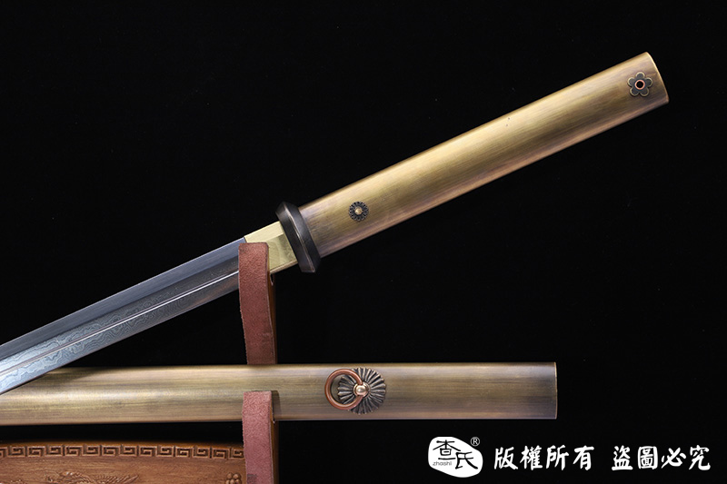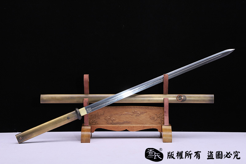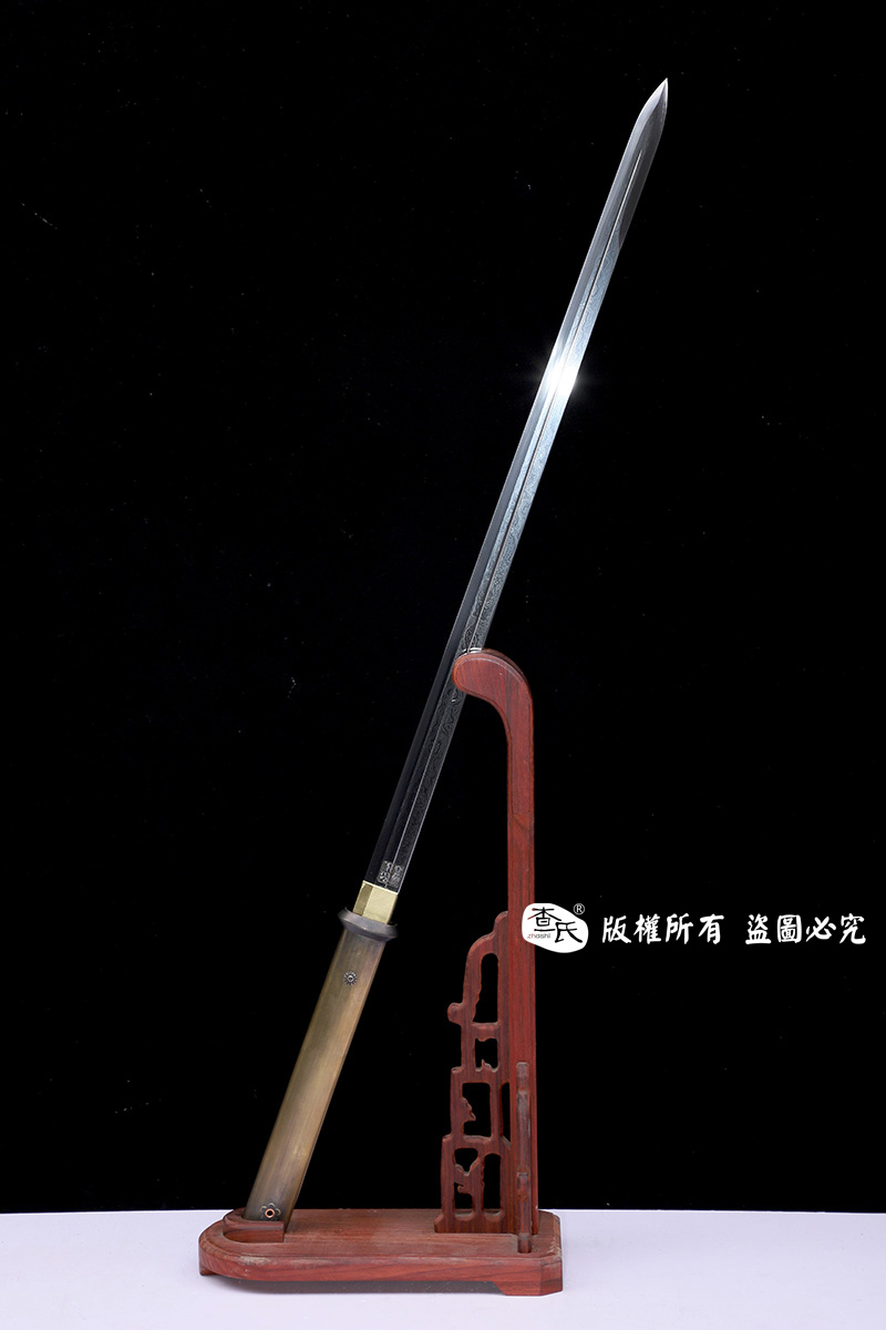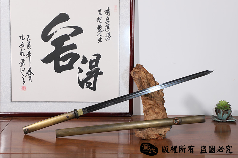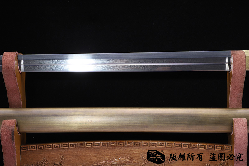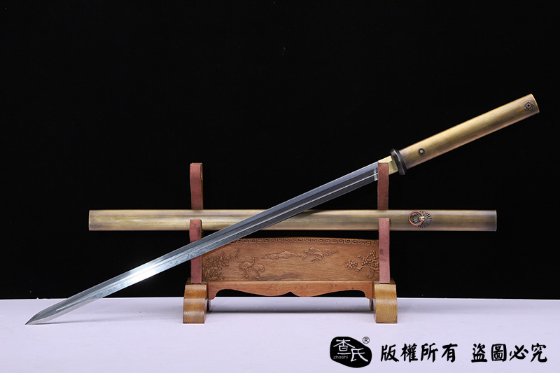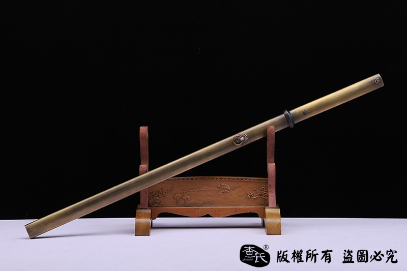 【作品简介】 本店商品均实物拍摄,细节清晰,可仔细比较。 【作品规格】 全长:103.2cm左右,柄长:26.6cm,刃长:73.7cm,刃宽:3.2cm,刃厚:0.7cm,重量:不带鞘1.3kg左右,带鞘1.9kg左右。 【作品鞘材】 【作品装具】 【作品硬度】 HRC 【作品柄材】 【作品赠品】 锦盒 架子 证书 【其他事项】 手工产品,重量尺寸稍有误差,请以实物为准。 赠品里面的架子并不是图上的展示的架子,图片架子另外加180。