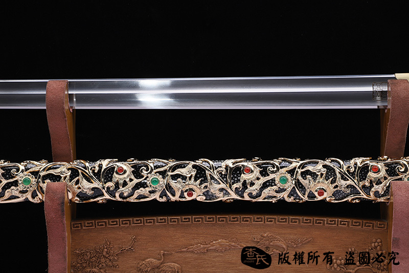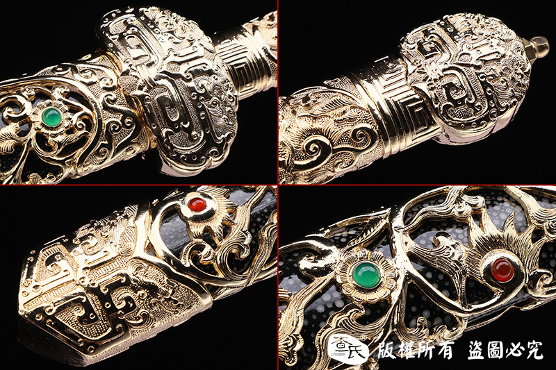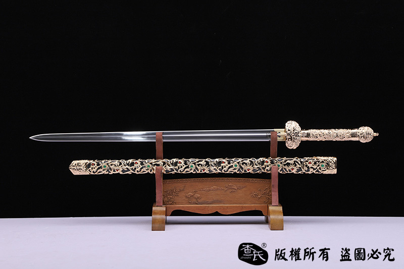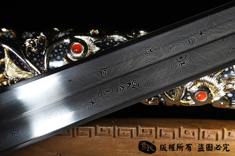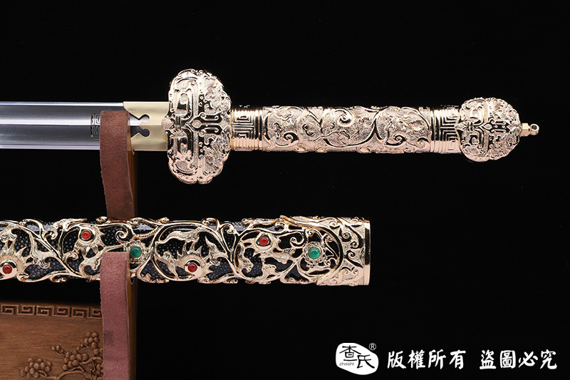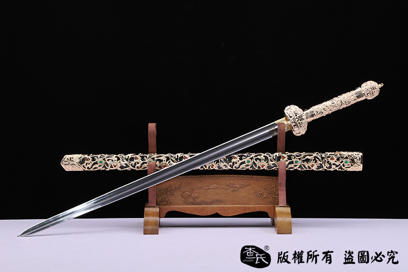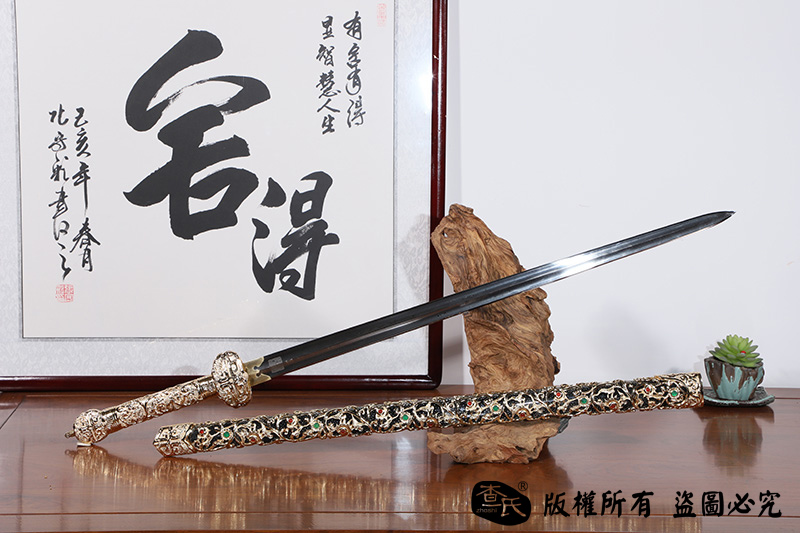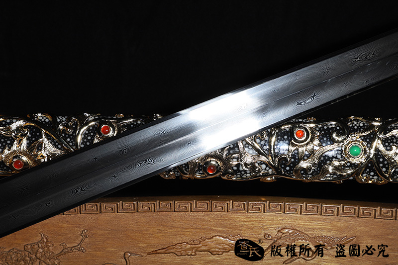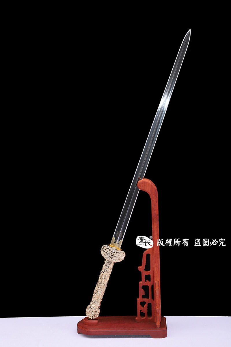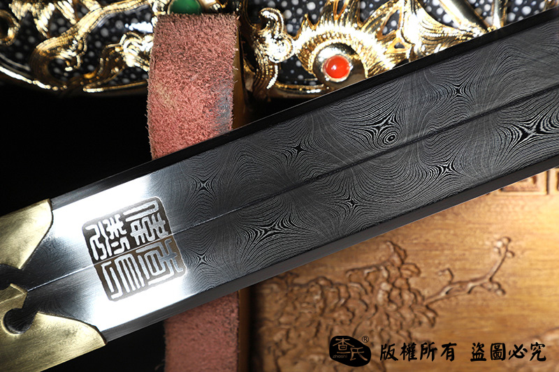 【作品规格】 全长:108cm左右,柄长:23cm,刃长:77cm,刃宽:3.6cm,刃厚:0.7cm,重量:不带鞘1.4kg左右,带鞘2.8kg左右。