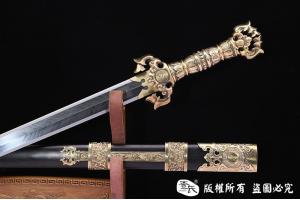 【作品规格】 全长:98cm左右,柄长:16cm,刃长:77cm,刃宽:3.5cm,刃厚:0.7cm,重量:不带鞘1.8kg左右,带鞘2.5kg左右。