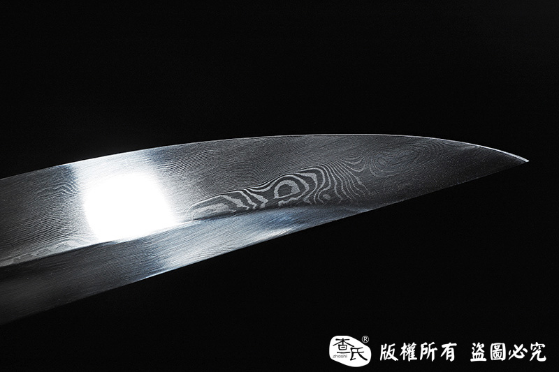 【刃材工艺】 禾字号百炼花纹钢手工打造,古法热处理,手工精细磨,根部刻字:查长伟制