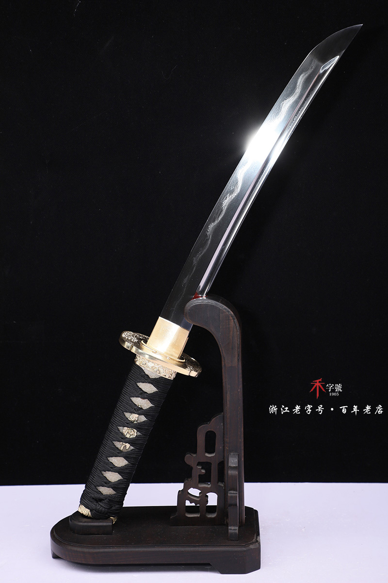 【作品规格】 全长:52cm左右,柄长:16cm,刃长:32cm,刃宽:3.2cm,刃厚:0.7cm,重量:不带鞘0.6kg左右,带鞘0.8kg左右。