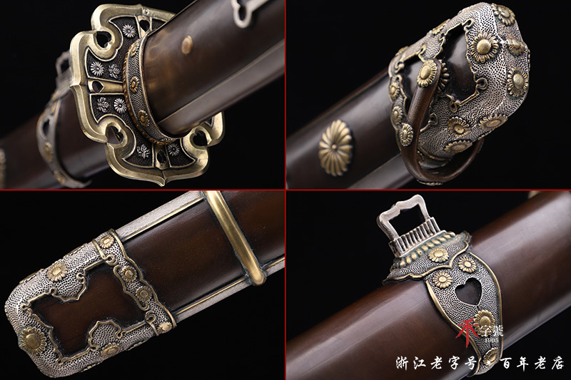 【作品柄材】 标准可拆卸结构,手柄外手工包铜