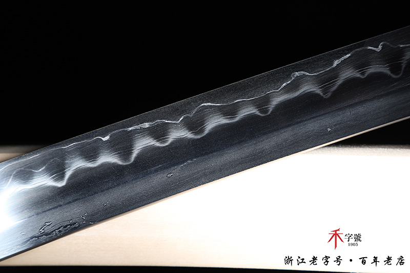 【刃材工艺】 地肌钢古法手工锻造+三枚合工艺,古法敷土烧刃热处理,手工精细磨,真横手,成色精美,刻字:长伟作