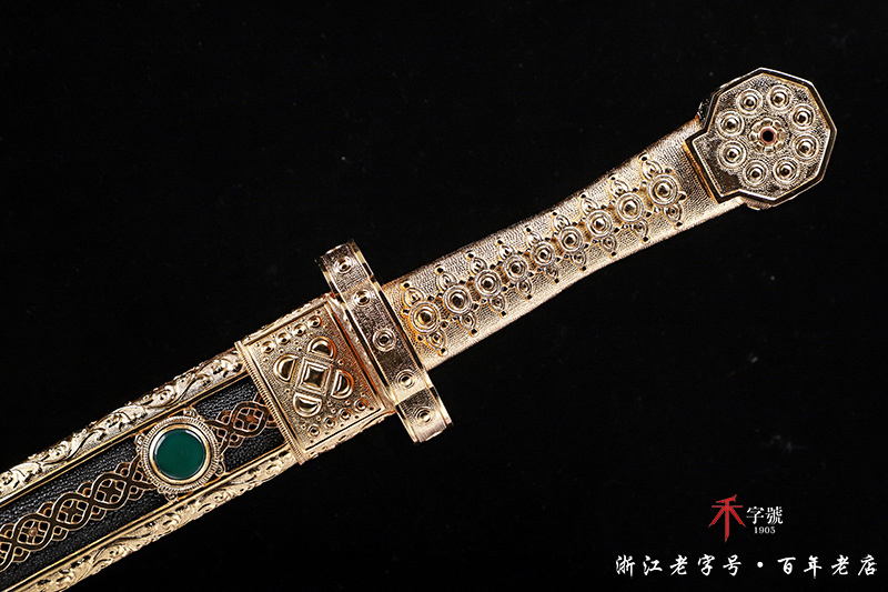 【作品鞘材】 手工雕刻铜装镀金+鱼皮+木芯