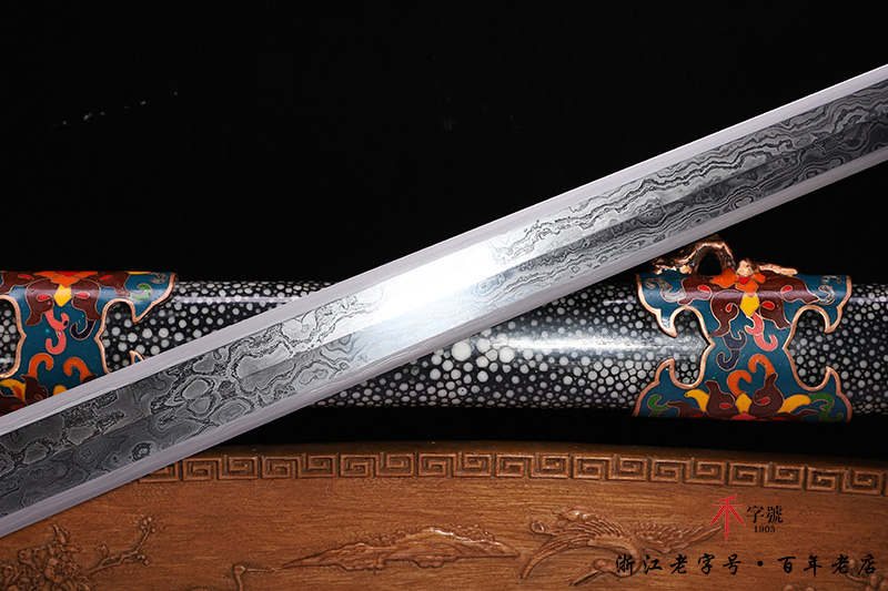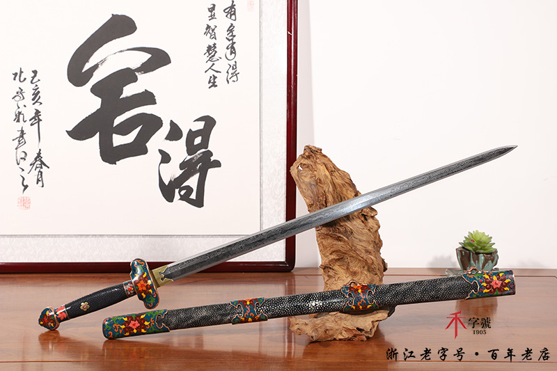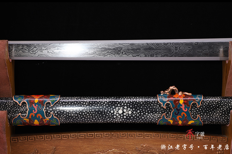 【作品规格】 全长:103cm左右,柄长:20cm,刃长:77cm,刃宽:3.5cm,刃厚:0.8cm,重量:不带鞘1.3kg左右,带鞘2.3kg左右。