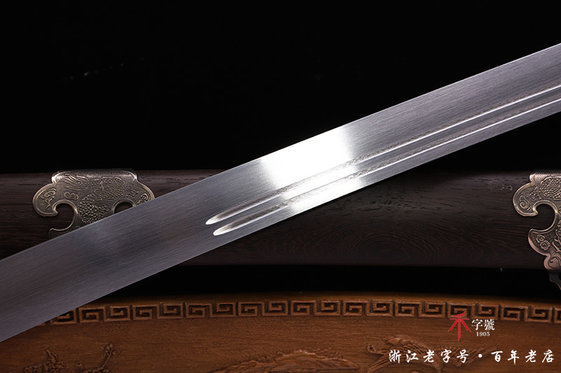 【作品规格】 全长:108cm左右,柄长:26cm,刃长:78cm,刃宽:3.4cm,刃厚:0.6cm,重量:不带鞘0.8kg左右,带鞘1.47kg左右。