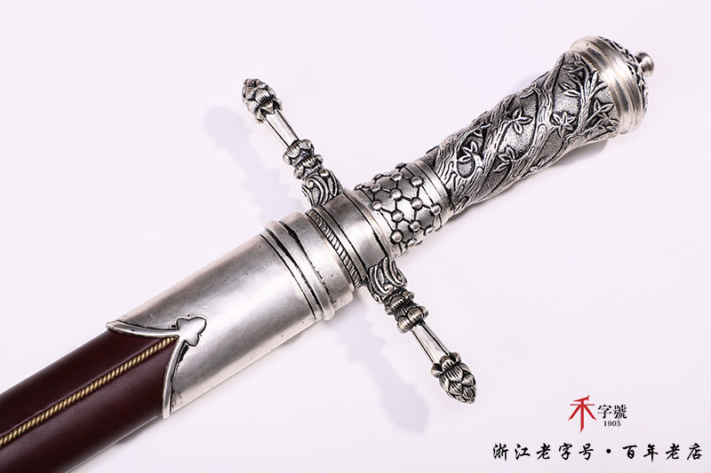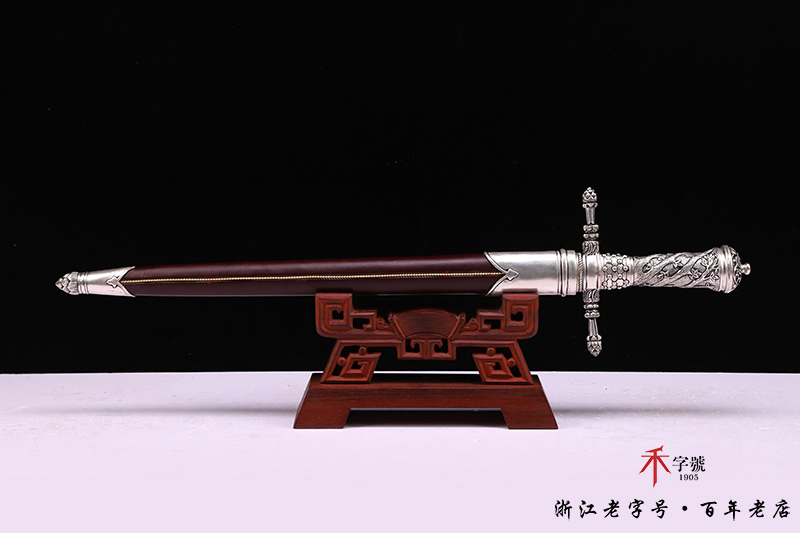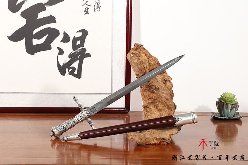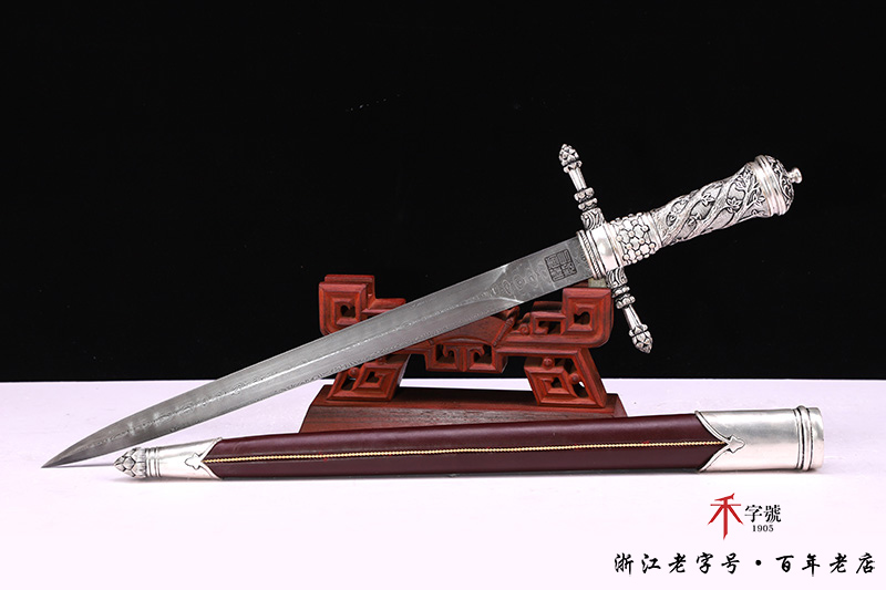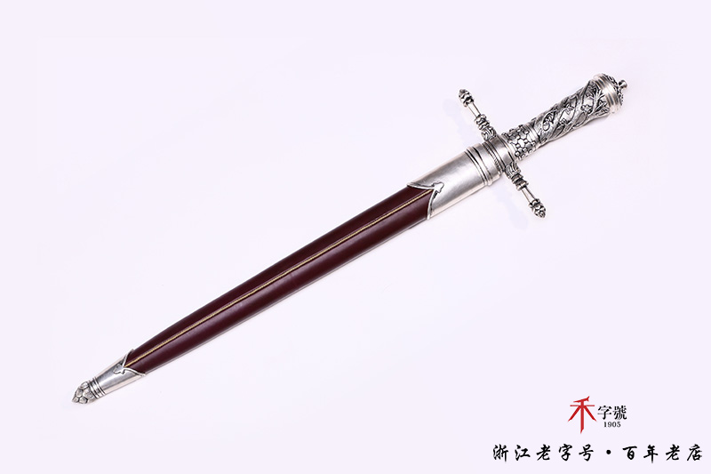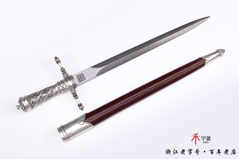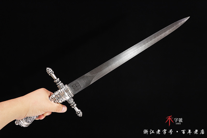 【作品规格】 全长:67cm左右,柄长:14cm,刃长:43cm,刃宽:3.3cm,刃厚:0.8cm,重量:不带鞘0.9kg左右,带鞘1.3kg左右。