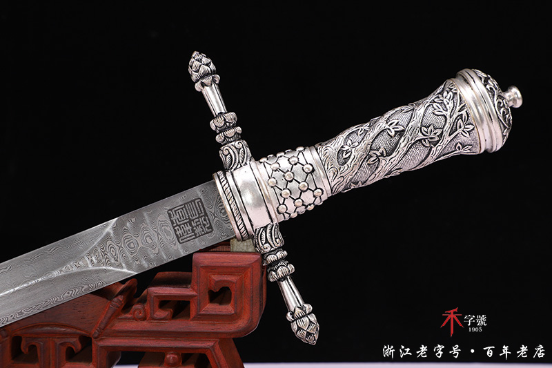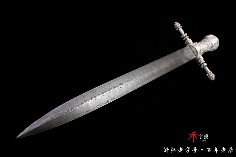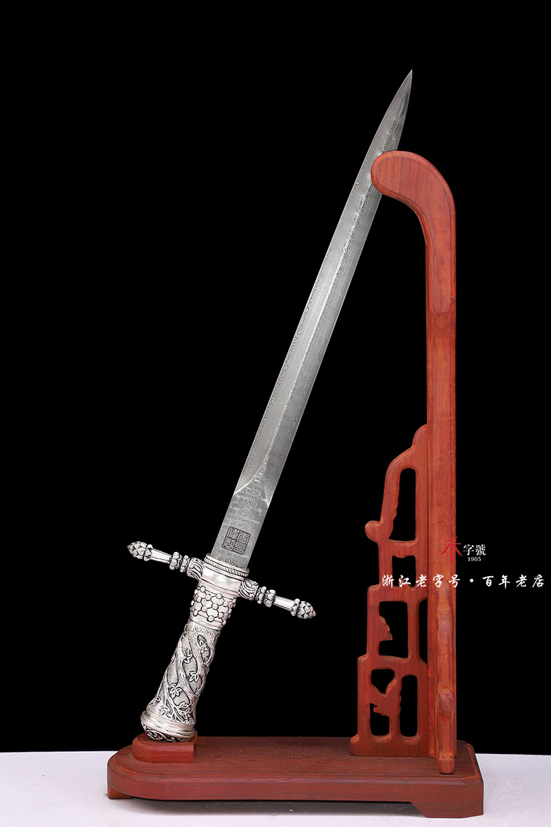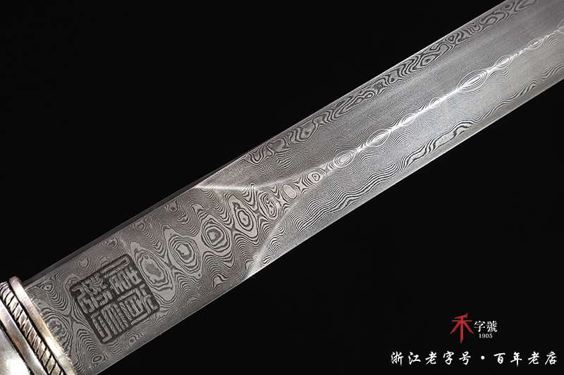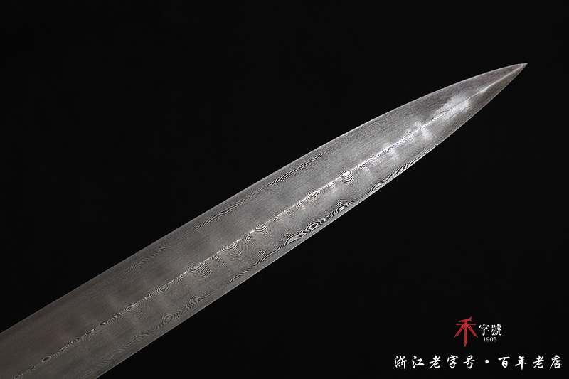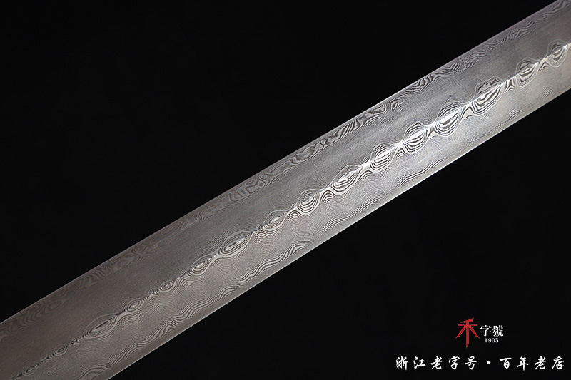【刃材工艺】 手工锻造大马士革剑刃,古法热处理,手工精细磨+禾字号研磨,成色精美,根部刻字:查长伟制