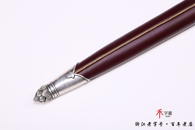 【作品鞘材】 实木鞘手工缝制包皮+嵌麻花铜丝