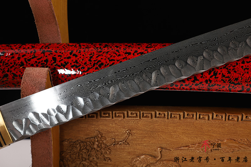 【刃材工艺】 百炼钢手工打造,古法油淬热处理,手工雕刻石纹,手工精细磨