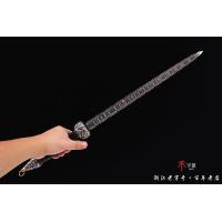 【作品简介】 本店商品均实物拍摄,细节清晰,可仔细比较。 【作品规格】 全长:60cm左右,柄长:17.5cm,刃长:40cm,刃宽:2.7cm,刃厚:1.8cm,重量:不带鞘1.5kg左右,带鞘3.1kg左右。 【刃材工艺】 不锈钢手工打造 【作品装具】 不锈钢护手点金 【作品柄材】 黑檀木 【作品赠品】 锦盒 架子 证书 【其他事项】 手工产品,重量尺寸稍有误差,请以实物为准。 赠品里面的架子并不是图上的展示的架子,图片架子另外加180。