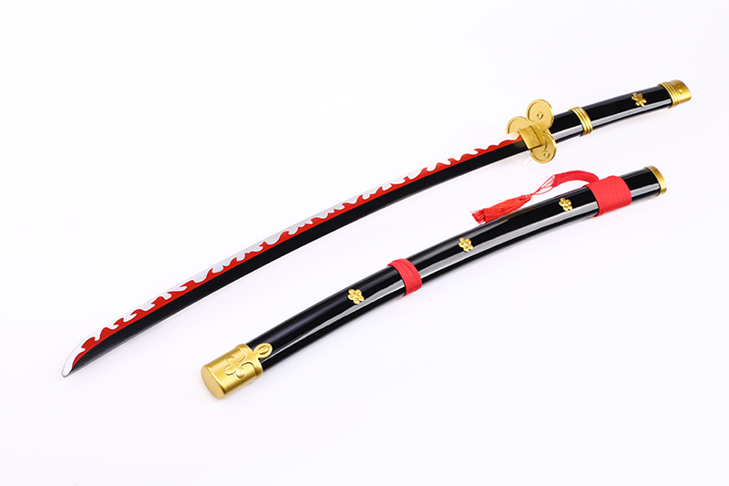 【作品简介】 本店商品均实物拍摄,细节清晰,可仔细比较。 【作品规格】 全长:101cm左右,柄长:27cm,刃长:70cm,刃宽:2.9 cm,刃厚:0.38cm,重量:不带鞘0.8 kg左右,带鞘1.1 kg左右。 【刃材工艺】 不锈钢 【作品鞘材】 木鞘 【作品装具】 合金 【作品硬度】 HRC 【作品柄材】 【作品赠品】 锦盒 架子 证书 【其他事项】 手工产品,重量尺寸稍有误差,请以实物为准。