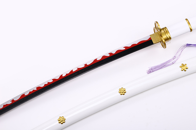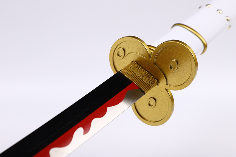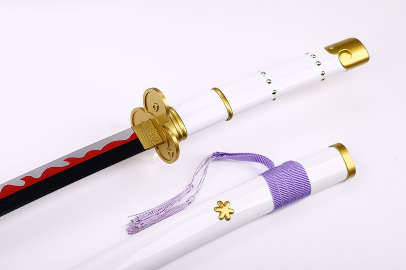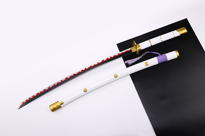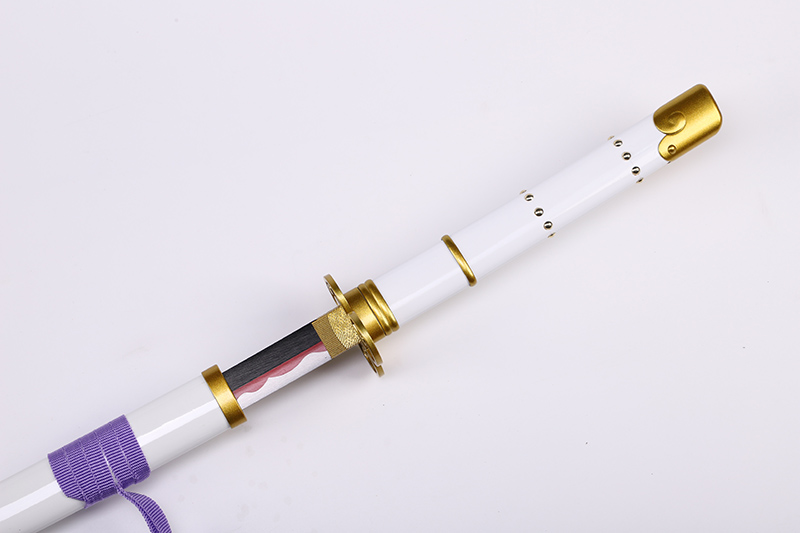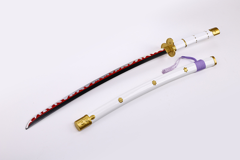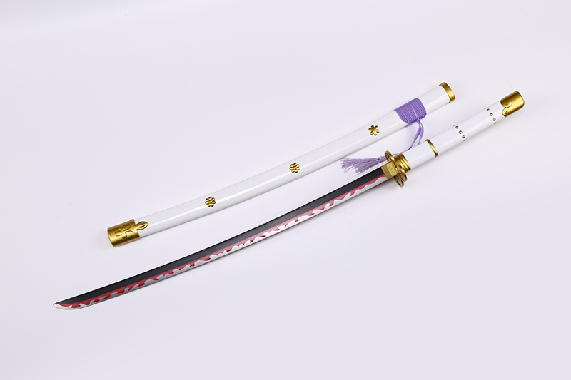 【作品简介】 本店商品均实物拍摄,细节清晰,可仔细比较。 【作品规格】 全长:101cm左右,柄长:27cm,刃长:70cm,刃宽:2.9 cm,刃厚:0.38cm,重量:不带鞘0.8 kg左右,带鞘1.1 kg左右。 【刃材工艺】 不锈钢 【作品鞘材】 木鞘 【作品装具】 合金 【作品硬度】 HRC 【作品柄材】 【作品赠品】 锦盒 架子 证书 【其他事项】 手工产品,重量尺寸稍有误差,请以实物为准。