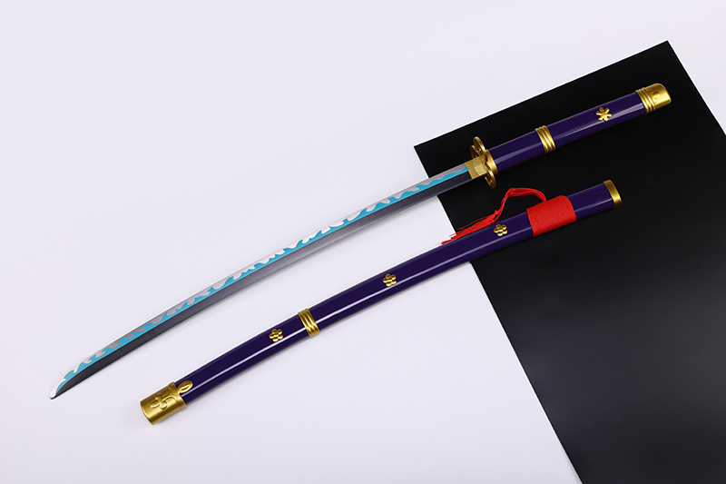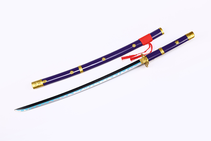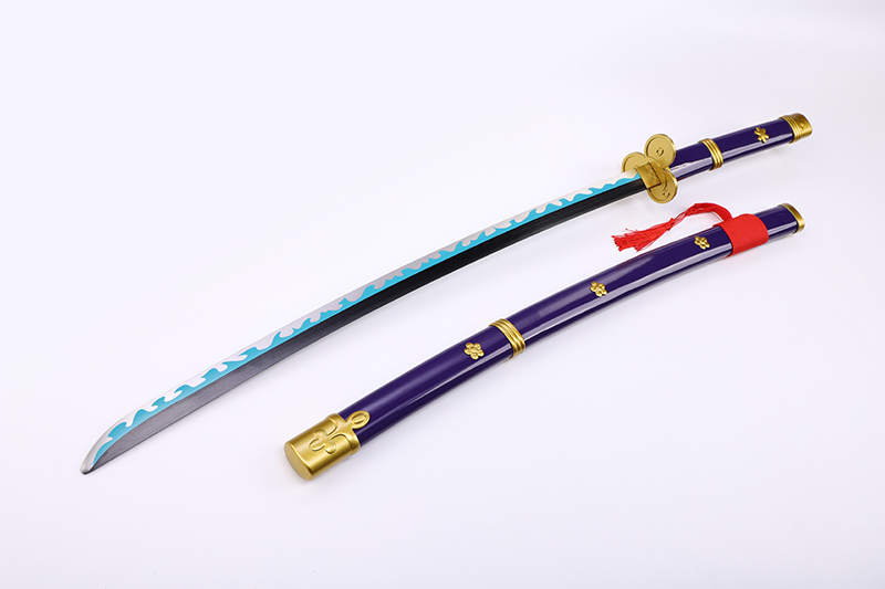 【作品简介】 本店商品均实物拍摄,细节清晰,可仔细比较。 【作品规格】 全长:101cm左右,柄长:27cm,刃长:70cm,刃宽:2.9 cm,刃厚:0.38cm,重量:不带鞘0.8 kg左右,带鞘1.1 kg左右。 【刃材工艺】 不锈钢 【作品鞘材】 木鞘 【作品装具】 合金 【作品硬度】 HRC 【作品柄材】 【作品赠品】 锦盒 架子 证书 【其他事项】 手工产品,重量尺寸稍有误差,请以实物为准。