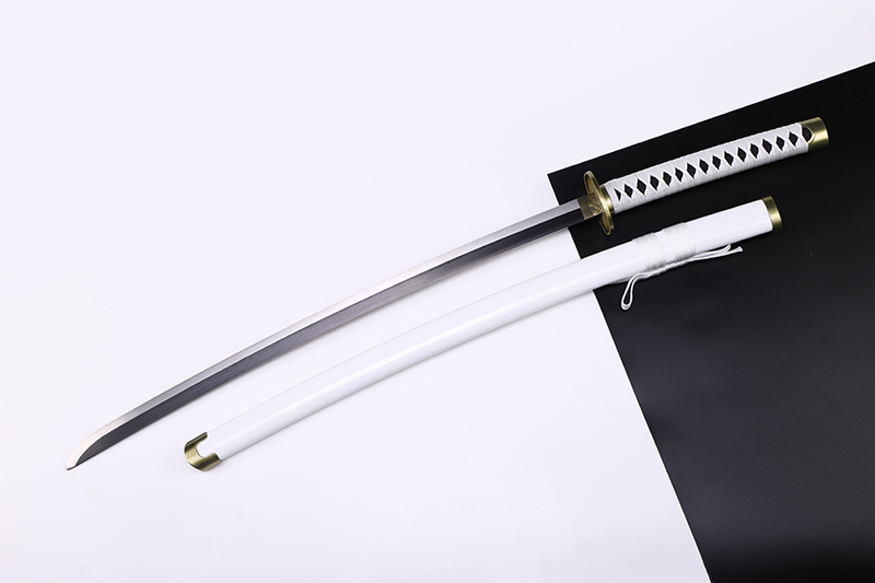 【作品简介】 本店商品均实物拍摄,细节清晰,可仔细比较。 【作品规格】 全长:101cm左右,柄长:27cm,刃长:70cm,刃宽:2.6 cm,刃厚:0.38cm,重量:不带鞘0.8 kg左右,带鞘1.1 kg左右。 【刃材工艺】 不锈钢 【作品鞘材】 木鞘 【作品装具】 合金 【作品硬度】 HRC 【作品柄材】 【作品赠品】 锦盒 架子 证书 【其他事项】 手工产品,重量尺寸稍有误差,请以实物为准。