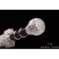 【作品规格】 全长:66cm左右,柄长:17cm,刃长:40cm,刃宽:3.4cm,刃厚:0.7cm,重量:不带鞘0.9kg左右,带鞘1.4kg左右。