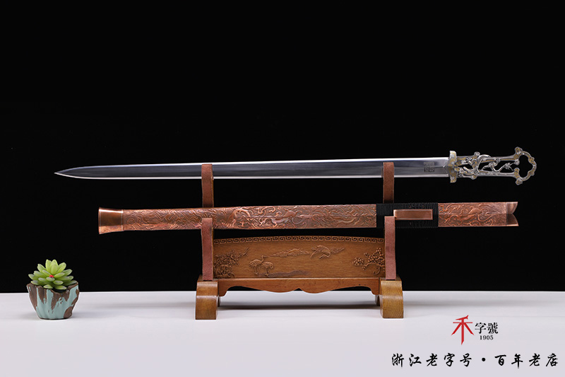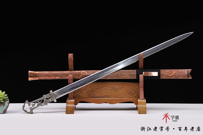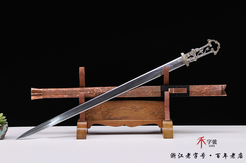 【刃材工艺】采用古法高难度禾字号百炼钢一体锻造,古法热处理,手工雕刻手柄+高难度错银错铜,根部刻字:查长伟制