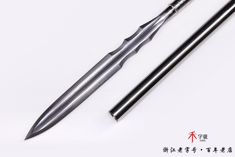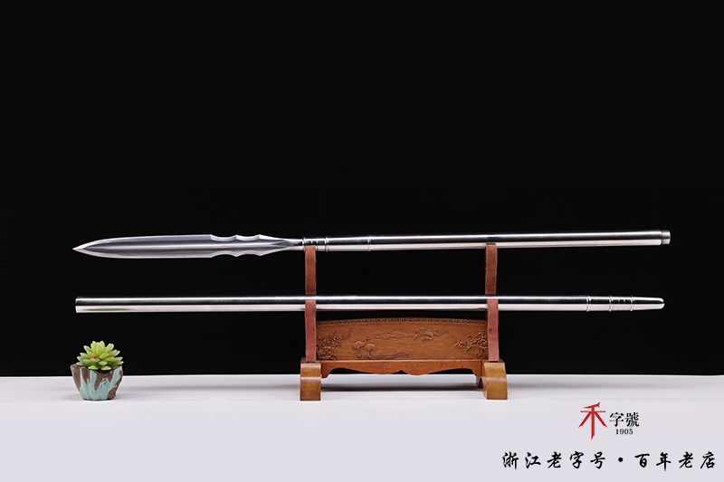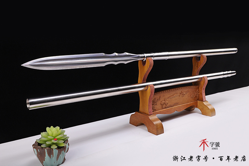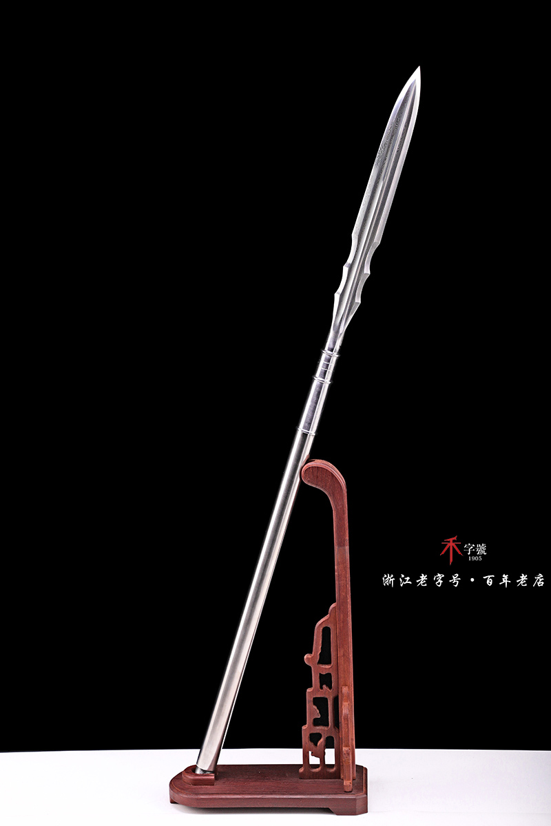 【作品简介】 本店商品均实物拍摄,细节清晰,可仔细比较。 【作品规格】 全长:222cm左右,柄长:179cm,刃长:43cm,刃宽:4.4cm,刃厚:1.3cm,重量:5.1kg左右。 【刃材工艺】 百炼钢枪刃,手工打造,古法热处理,不锈钢柄,柄可以拆卸 【作品硬度】 58HRC 【作品赠品】 锦盒 架子 证书 保养油 【其他事项】 手工产品,重量尺寸稍有误差,请以实物为准。 赠品里面的架子并不是图上的展示的架子,图片架子另外加180。