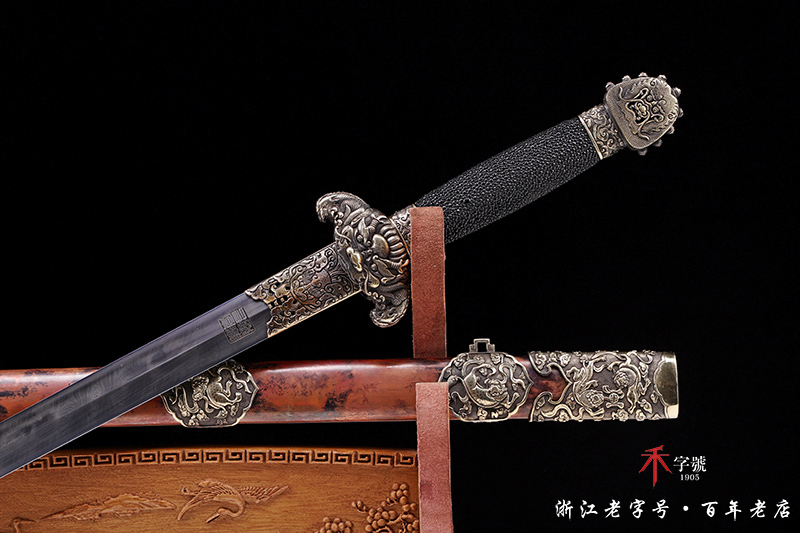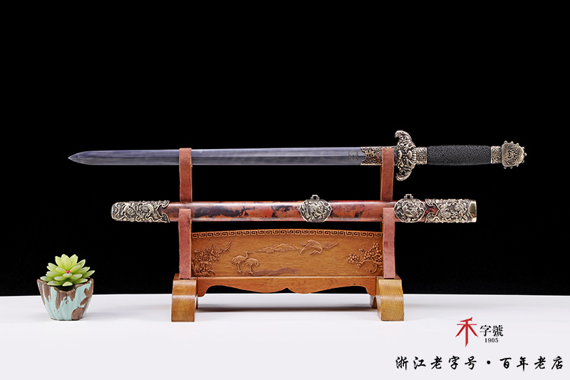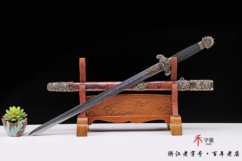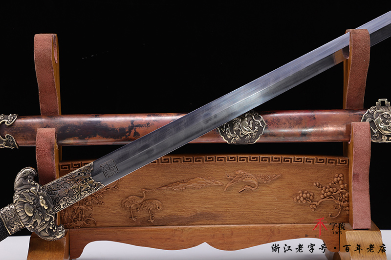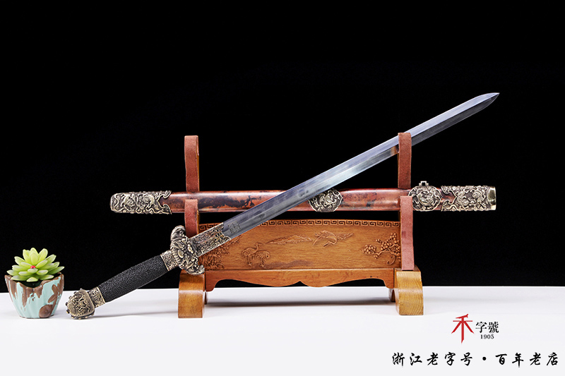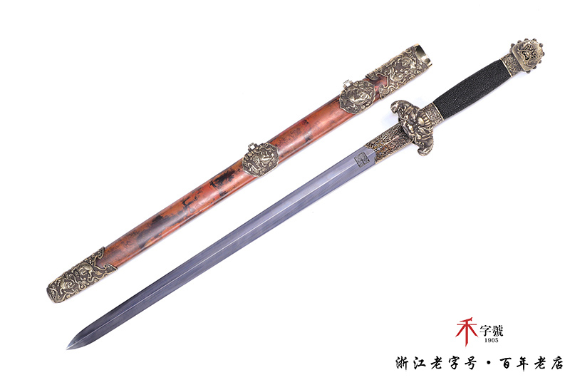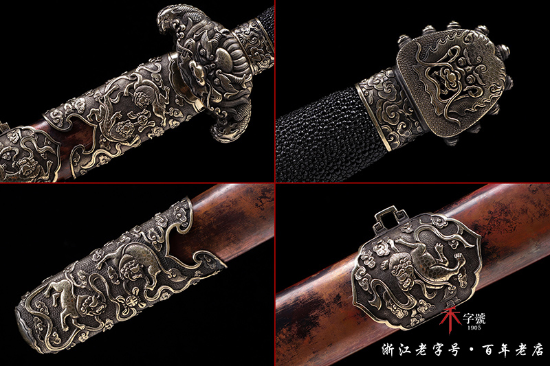 【作品规格】 全长:85cm左右,柄长:19cm,刃长:56cm,刃宽:3cm,刃厚:0.7cm,重量:不带鞘0.8kg左右,带鞘1.5kg左右。