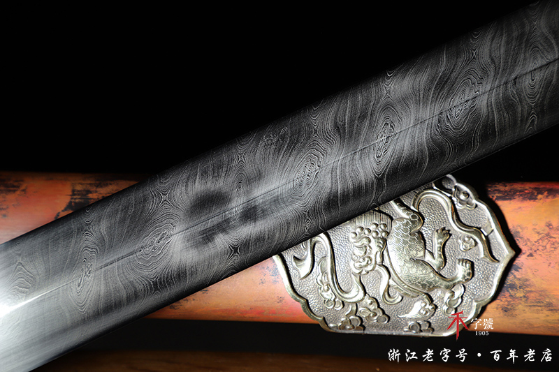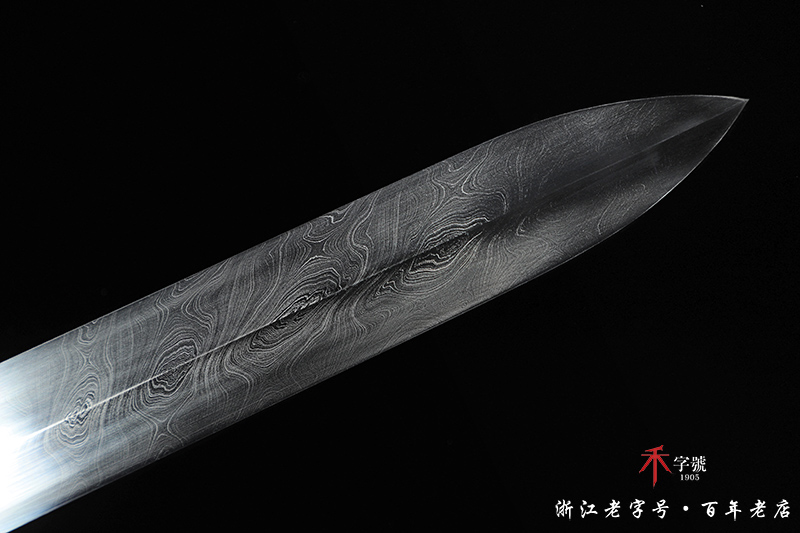 【刃材工艺】 高难度手工混合毛铁锻造乾坤纹,古法热处理,手工精细磨,根部刻字:查长伟制