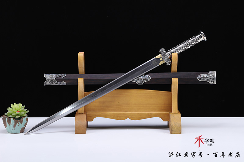 【作品规格】 全长:80cm左右,柄长:15.8cm,刃长:59.7cm,刃宽:3.5cm,刃厚:0.77cm,无鞘重:1.1kg左右,带鞘1.6kg左右。【刃材工艺】 古法混合毛铁手工打造乾坤纹,这个工艺是禾字号自家传承非常具有难度和特色的工艺,锻造纹路有龙腾飞跃的感觉【作品鞘材】 名贵紫光檀【作品装具】 精细手工白铜装【作品硬度】 57HRC【作品柄材】 名贵紫光檀【作品赠品】 锦盒 架子 证书【其他事项】 手工产品,重量尺寸稍有误差,请以实物为准。赠品里面的架子并不是图上的展示的架子,图片架子另外加180。![]()