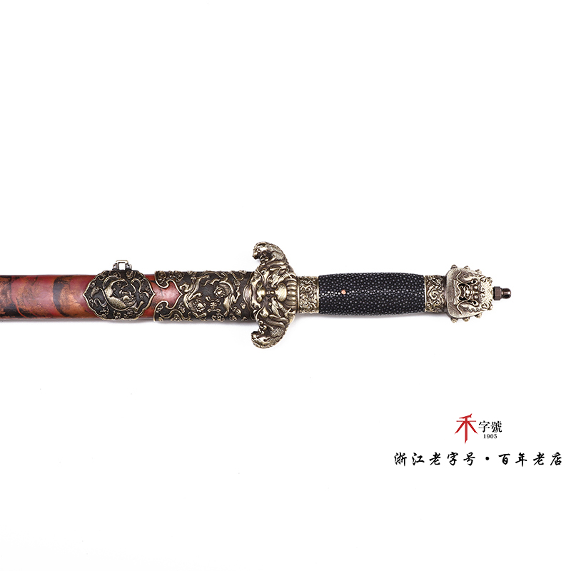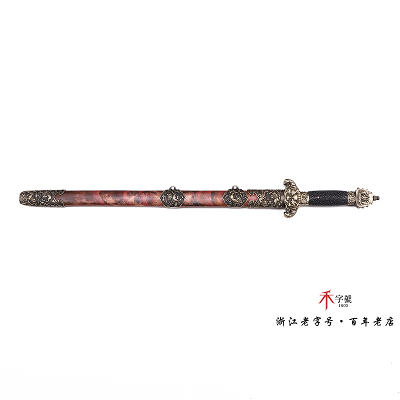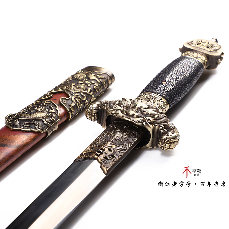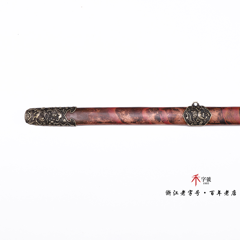 【作品规格】 全长:85cm左右,柄长:19cm,刃长:56cm,刃宽:3cm,刃厚:0.7cm,无鞘重:0.8kg左右,带鞘 1.5kg左右。【刃材工艺】 高难度手工混合毛铁锻造乾坤纹,古法热处理,手工精细磨,根部刻字:查长伟制【作品鞘材】传世水墨铜+木芯鞘【作品装具】 精细铜装雕刻【作品硬度】 58HRC【作品柄材】 名贵珍珠鱼皮+木芯【作品赠品】 锦盒 架子 配大师证书 保养油【其他事项】 手工产品,重量尺寸稍有误差,请以实物为准。赠品里面的架子并不是图上的展示的架子,图片架子另外加180。![]()