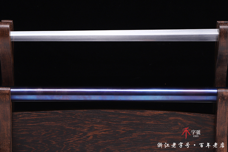 【作品规格】 全长:90.7cm左右,柄长:17.5cm,刃长:55cm,刃宽:2.06cm,刃厚:0.68cm,无鞘重:0.61kg左右,带鞘 1.08kg左右。【刃材工艺】 百炼钢手工打造,古法热处理,手工精细磨【作品鞘材】 钛合金+实木【作品装具】 手工包铜刻花【作品硬度】 57HRC【作品柄材】 钛合金+实木【作品赠品】 锦盒 架子 证书 保养油【其他事项】 手工产品,重量尺寸稍有误差,请以实物为准。赠品里面的架子并不是图上的展示的架子,图片架子另外加180。![]()