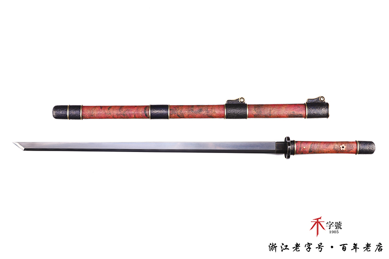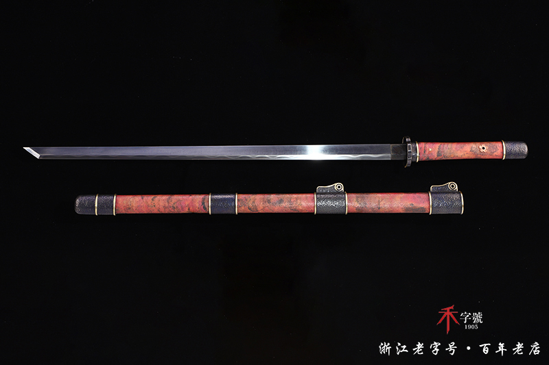 【作品规格】 全长:98.5cm左右,柄长:23cm,刃长:70cm,刃宽:3.23cm,刃厚:0.7cm,无鞘重:1.2kg左右,带鞘 2.05kg左右。