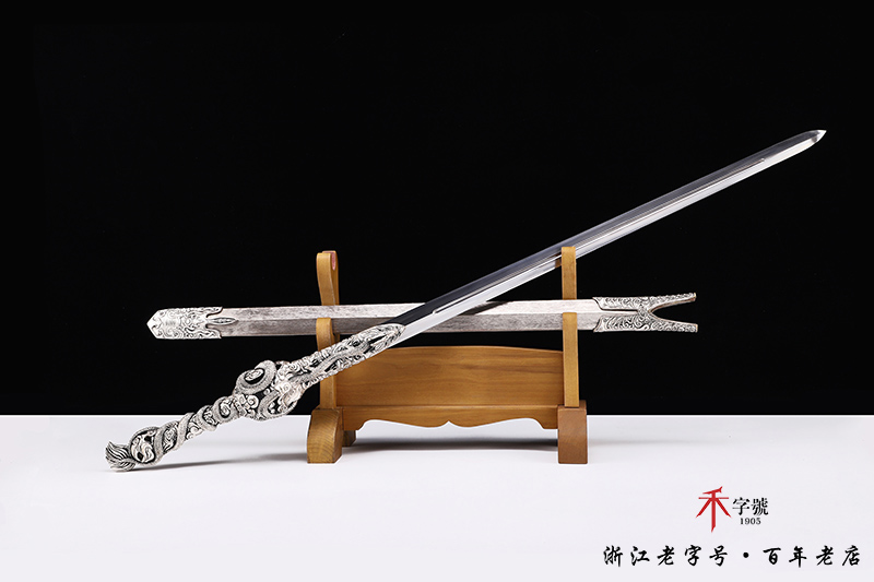 【刃材工艺】 龙泉禾字号手工锻造龙腾纹百炼钢,古法热处理,手工精细磨,锻造纹路就像一条龙一样盘在剑刃上,非常精美,根部刻字:查长伟制【作品鞘材】 手工雕刻铜鞘+镀古银【作品装具】 手工高难度高浮雕精细铜装+镀古银【作品硬度】 58HRC【作品柄材】 手工高难度高浮雕精细铜装+镀古银【作品赠品】 锦盒 架子 配大师证书 保养油【其他事项】 手工产品,重量尺寸稍有误差,请以实物为准。赠品里面的架子并不是图上的展示的架子,图片架子另外加180。![]()
